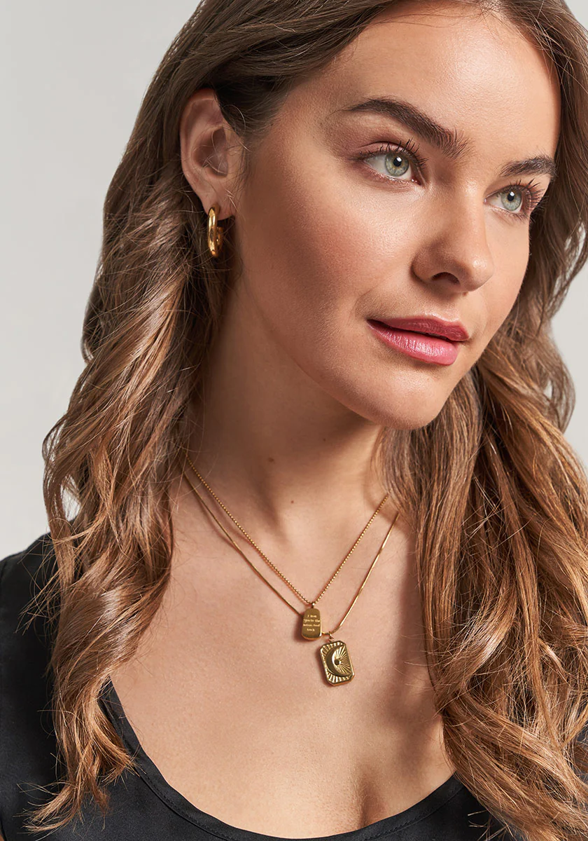 Diese Halskette im Retro-Stil überzeugt mit ihrem minimalistischen Design und einem rechteckigen Anhänger mit „I love you to the moon and back“ Gravur. Die filigrane Kugelkette ergänzt das stilvolle Design. Gefertigt aus korrosionsbeständigem Edelstahl 304 mit Vergoldung ist er nicht nur widerstandsfähig gegen Kratzer und Abnutzung, sondern auch hypoallergen und hautfreundlich.