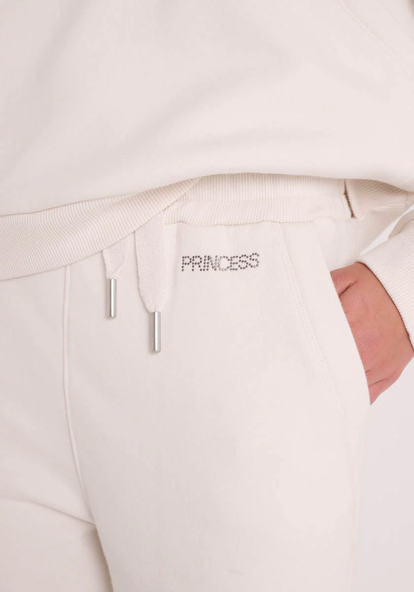 Lockere Sweathose aus Baumwollmix mit elastischem Bund und Tunnelzug. Zwei seitliche Taschen. "PRINCESS" - Schriftzug mit Strassverzierung. Elastischer Beinabschluss.