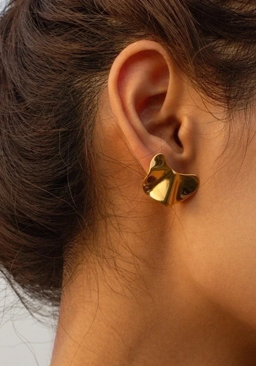 Goldfarbene Ohrstecker aus Edelstahl mit abstrakter, gefalteter Form.